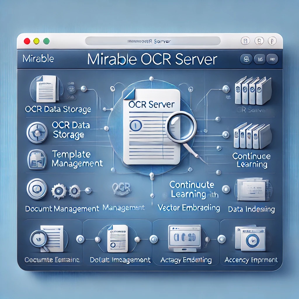 Mirabile OCR Server is a powerful web-based application serving as a centralized repository for handling OCR data and indexing results from Mirabile OCR Station. Designed to optimize document processing and manage templates effectively, it enables storage, retrieval, and indexing of OCR data, continuously enhancing accuracy with vector embedding technology.